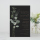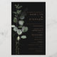 This black formal minimal eucalyptus wedding is perfect to compliment a rustic wedding. The design features watercolor green eucalyptus foliage in a black background.