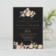This black formal royal floral Spanish boda wedding invitation is perfect for a rustic wedding. The design features watercolor pink, blush, and white elegant flowers with emerald green leaves.