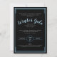Sometimes simple is best and if you have a gala planned, this invitation will be perfect for you. Cool tones of blue against a black formal background set the wintery feel for the season and the clean information text paired with a script font keeps the information clear and readable. Lines are used as a simple frame around the invitation. Simplistic elegance is the goal of this design.