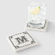 Black Frame White Damasks And Large Monogram Stone Coaster