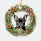 Black French Bulldog Star Bow Wreath Ceramic Ornament