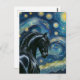 A beautiful black Fresian horse in a Van Gogh starry night faux AI generated Van Gogh art