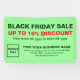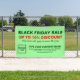 Customisable rectangle banner with Black Friday Sale, your business name and other information. Customise it and display it as marketing material to attract more customers to buy your products. Design colours are dark green and red texts on light green background. Contents are Black Friday Sale, percent discount that you will offer, sale dates, your business name, logo, address, phone number, e-mail and website or your business social media page. Please check the appearance after uploading logo and typing texts. If the appearance is pleasing to you, you can place your order now. If you need to resize and move the logo and texts to fit on this banner or on the size that you will choose, please change in the design tool. You can also change the background colour, font colour and font style in the design tool. Wishing you more sales this Black Friday.