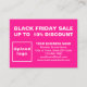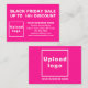 Attract more customers by offering them discount this Black Friday, one of the marketing strategies to have more customers. Customisable enclosure card that you can use to attract more customers to buy your products or clients to like your services. Enclosure card with your business brand as marketing material that you can also use to build brand name awareness. Design colours are white texts on pink background. To customise this enclosure card, specify the percent discount that you will offer, upload your business logo, type your business name, address, phone number, e-mail and website or your business social media page. Please check the appearance on front and back sides after uploading logo and typing texts. If the appearance is pleasing to you, you can place your order now. If you need to resize and move the logo and texts to fit on this enclosure card, please change in the design tool. You can also change the background colour, font colour and font style in the design tool. Wishing you more sales this Black Friday.