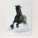 Black Friesian Horse In Snow Jigsaw Puzzle