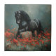 Black Friesian Stallion Red Poppies Ceramic Tile