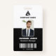 Introducing our sophisticated ID card featuring a striking contrast of white elegance on the top half and bold black geometric patterns on the bottom half. Personalise these vertical badges by adding your employee photo and name, and include two lines of custom text for essential details like employee ID number, role, or location. Your company logo takes pride of place at the top, making a powerful statement. And don't forget the additional custom text field on the back for return information or other important details. Elevate your professional presence with this sleek and customisable ID card design – because your identity deserves to stand out!