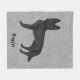Destei's original cartoon illustration of an adorable black colour German Shepherd breed dog. The background colour is grey with a decorative texture. The texture can be removed and the background colour can be changed to any other colour, if so wished. There is also a personalizable text area for a name or other custom text.