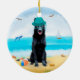 Black German Shepherd Dog on Beach Ceramic Ornament