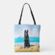 Black German Shepherd dog sitting on beach is a perfect gift idea for someone who love this dog breed.