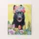Black German Shepherd Dog with Flowers Spring Jigsaw Puzzle