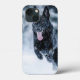 Black German Shepherd in snow