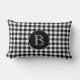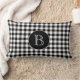 Black Gingham Pattern Custom Monogram Lumbar Cushion