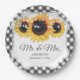 Black Gingham Sunflower Mr and Mrs Wedding Paper Plate