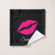 Black Girly Pink Lipstick Monogram Name Bathroom Bath towel set