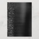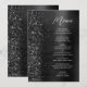 This elegant modern wedding menu features a faux diamond glitter border on a black faux brushed metal background. The customizable text combines white handwriting script and sans serif fonts. The black brushed metal and glitter design is repeated on the reverse side.
