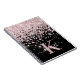 Elegant, Glam, Bling Sparkle Girly Shiny black and pink rose gold glitter diamond confetti custom personalised monogrammed notebook. Features a faux pink rose gold and white diamonds confetti on black, with beautiful name template in hand lettering calligraphy script font with swashes. Personalise your name and monogram initial. Please note: this design is a printed photo effect with no real glitter and jewel. Great feminine girly gift for birthday, sister, mother, wedding, bridal shower, sweet 16 birthday party and baby shower, makeup artist, beauty salon owners, fashion blogger and for anyone who loves pretty stylish glamourous style.