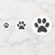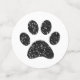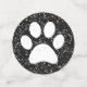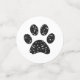 Animal paw prints in fun black and white glitter pattern printed on cardstock table sprinkle confetti that works with any pet's or children's cat, dog, puppy, or kitty birthday theme, and also represent foot tracks from a school mascot or provide clues in a scavenger hunt at a fundraising event with a nature theme.