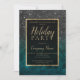 A modern, pretty chic and elegant faux black glitter shower ombre with green emerald watercolor colour block business corporate Christmas party invitation with gold ombre pattern.