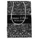 Modern black sparkling glitter pattern and white sparks. Black silver stripe with monogram
