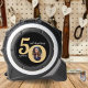 Black and gold happy birthday tape measure for a 50 year old. Unisex design great for women or for men. Customise the age to suit your occasion and add a personal photograph of the recipient. Great for a 50th anniversary or birthday party gift for a fiftieth birthday bash.