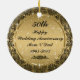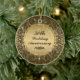 Elegant gold tones vintage floral circular frame with touch of black 50th wedding anniversary christmas ornament. Black ornate floral paisley