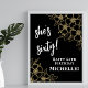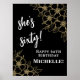 Celebrate sixty wonderful years with this elegant birthday sign, designed in a vertical layout for a modern and eye-catching display. The black background is accented with gold watercolor florals placed in the top right and bottom left corners, adding a sophisticated botanical touch.