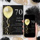 Black & Gold | 70th Glitter Balloon Birthday Invitation