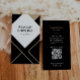 Grow your business network clientele with this black gold abstract geometric real estate agent business card. The design features sharp lines, modern typography, and striking layouts in a black background.
