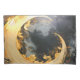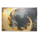 Energy, and elegance metallic moon with flowing golden swirl against a deep black background.