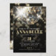 The sleek black backdrop pairs with a mix of white and gold serif fonts for an elegant, high-contrast look. Whether you're planning a classy cocktail night or a lively retro-inspired party, this versatile design suits any celebration. All colors, including the background and font shades, can be customized to fit your theme.
