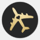 Black Gold Aeroplane Heart Travel Theme Favour Classic Round Sticker