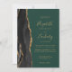 Black Gold Agate Emerald Green QR Code Wedding Invitation