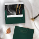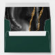 The inside of this elegant modern wedding invitation envelope features a black watercolor agate design trimmed with faux gold glitter. Customise the back flap with the names of the bride and groom in gold-coloured handwriting script and return address in copperplate font on an emerald green background.