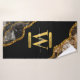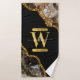 Black & Gold Agate Geode Glitter Monogram Bath Towel Set