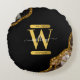 Black & Gold Agate Geode Glitter Monogram Round Cushion