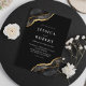 Elegant black and gold foil wedding invitation featuring elegant typography design and marble background. Personalise with all of your details for a custom wedding invitation.