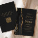 Black Gold Agate QR Code 50th Birthday Invitation
