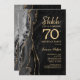 Black and gold agate surprise 70th birthday party invitation. Elegant modern design featuring watercolor agate marble geode background, faux glitter gold and typography script font. Trendy invite card perfect for a stylish women's bday celebration. Printed Zazzle invitations or instant download digital printable template.