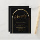 An elegant 70th birthday invitation. A black background with a golden arch on the front.