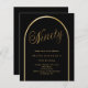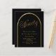 An elegant 90th birthday invitation.  A black background with a golden arch on the front.