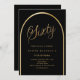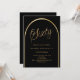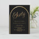 An elegant 60th birthday invitation.  A black background with a golden arch on the front.