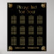 Using a sleek, retro font, I've created a graphic that reads "Please Find Your Seat". Framing embellishments with an Art Deco vibe were added to each corner. All these graphics were embellished with faux gold treatments. Complementary fonts and colors were used for the placeholder fields you'll edit as you personalize this design. All layers were added separately and left unlocked to give you considerable design control. Feel free to change the background color to anything you prefer. This setup has 12 tables laid out in three rows of four. Alternate versions of the header text graphics have been included but "turned off". You can see these by clicking the eyeball beside each layer, should you be interested in any changes in that area // 122 //