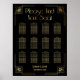 Using a sleek, retro font, I've created a graphic that reads "Please Find Your Seat". Framing embellishments with an Art Deco vibe were added to each corner. All these graphics were embellished with faux gold treatments. Complementary fonts and colors were used for the placeholder fields you'll edit as you personalize this design. All layers were added separately and left unlocked to give you considerable design control. Feel free to change the background color to anything you prefer. This setup has 12 tables laid out in three rows of four. Alternate versions of the header text graphics have been included but "turned off". You can see these by clicking the eyeball beside each layer, should you be interested in any changes in that area // 122 //