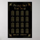 Using a sleek, retro font, I've created a graphic that reads "Please Find Your Seat". Framing embellishments with an Art Deco vibe were added to each corner. All these graphics were embellished with faux gold treatments. Complementary fonts and colors were used for the placeholder fields you'll edit as you personalize this design. All layers were added separately and left unlocked to give you considerable design control. Feel free to change the background color to anything you prefer. This setup has 16 tables laid out in four rows of four. Alternate versions of the header text graphics have been included but "turned off". You can see these by clicking the eyeball beside each layer, should you be interested in any changes in that area // 122 //