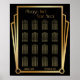 Using a sleek, retro font, I've created a graphic that reads "Please Find Your Seat". A bold, simple Art Deco frame surrounds the contents. All these graphics were embellished with faux gold treatments. Complementary fonts and colors were used for the placeholder fields you'll edit as you personalize this design. All layers were added separately and left unlocked to give you considerable design control. Feel free to change the background color to anything you prefer. This setup has 16 tables laid out in four rows of four. Alternate versions of the header text graphics have been included but "turned off". You can see these by clicking the eyeball beside each layer, should you be interested in any changes in that area // 122 //