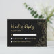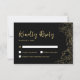 Black gold birthday celebration RSVP card. Feminine modern design features botanical accents and typography script font. Classy respond card perfect for a stylish party.