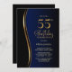 Invite your friends and loved ones with this modern black, gold and blue 55th birthday party invitation. The customisable text area in this invitation template allows you to effortlessly include all the necessary details for your special birthday celebration, including the date, time, venue, and RSVP information. A variety of paper types and corner styles are available for your unique invitations, along with the option to download if you prefer a digital format.