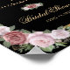 Elegant black and gold floral bridal shower welcome sign featuring blush pink flowers and greenery framing the event details inside a gold frame adorned with gold confetti. Matching items available.