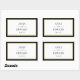 Black and white with a touch of gold classic rectangular stickers. Bride and groom names and date in block and script text within a black and shade of gold border.